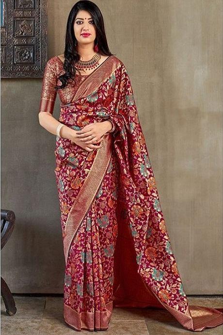 Traditional Ready Maroon Color Soft Silk Jacquard Sarees SY 970