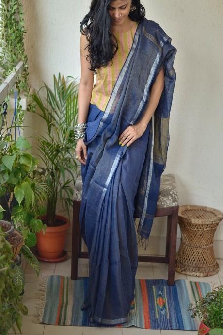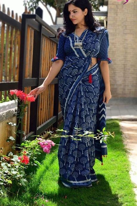 Unique blue Color Designer Cotton Soft Silk Printed Sari SY 955