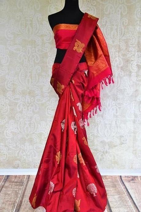 Attractive Golden And Red Color Designer Soft Silk Sari SY 953