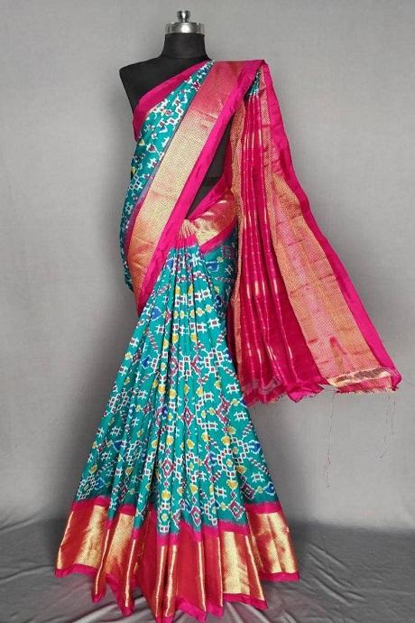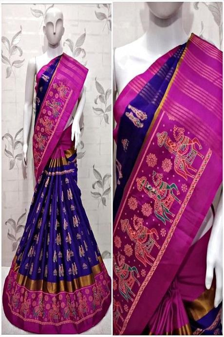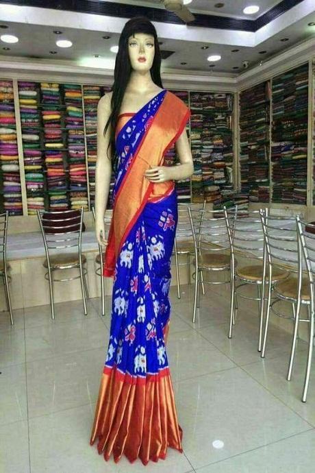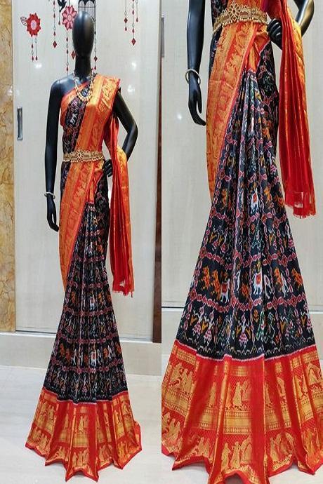 Trendy Blue And Orange Color Soft Silk Ikat Sarees SY 963