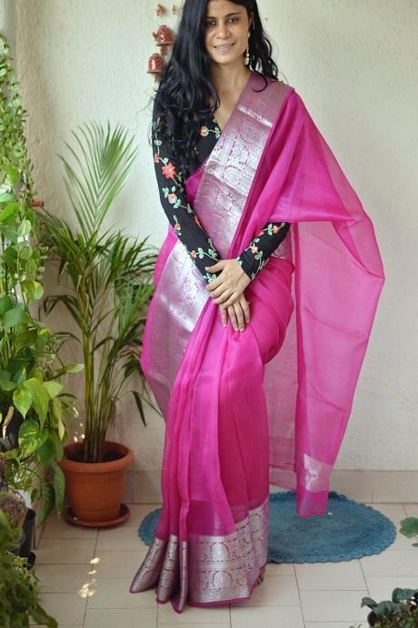 Hand Weaving Occasional Wear Soft Linen Cotton Silk Fancy Sarees SY 883