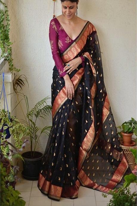Grey Black Color Designer Festival Wear Soft Cotton Silk Fancy Saree SY 877