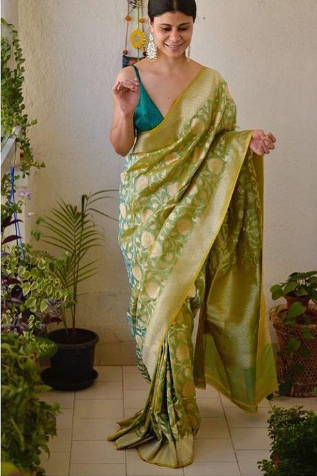 Green Color Designer Hand Weaving Party wear Soft Silk Jacquard Sarees SY 880
