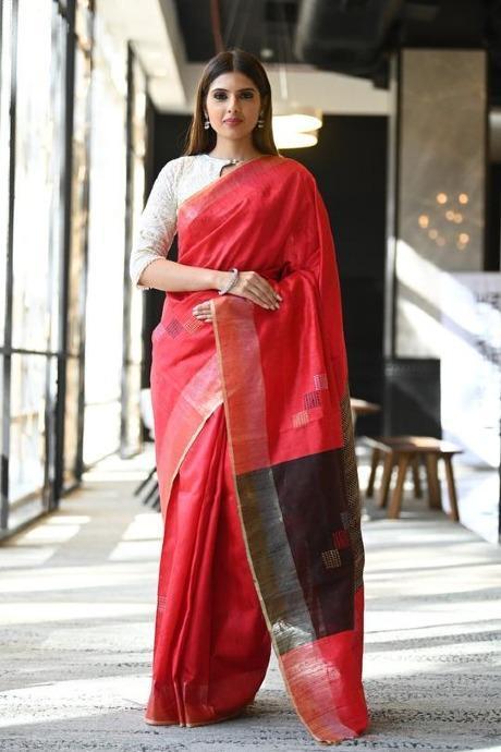 Alluring Red Color Soft Linen Silk Designer Plain Saree SY 537