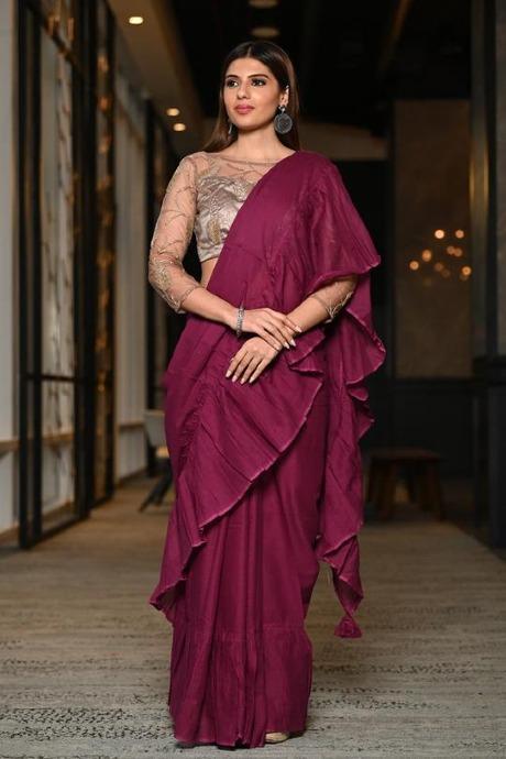 Designer One piece Maroon Color Ruffle Saree SY 499