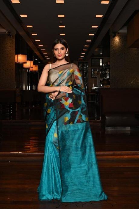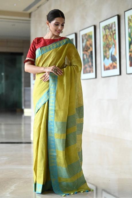 Superior Firozi Colored Hand Linen Soft Silk Jacquard Saree SY 483