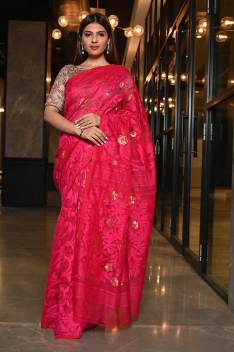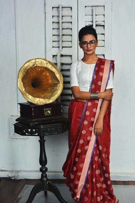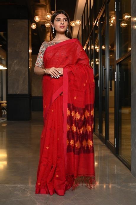 Delightful Red Color Linen Red Hand Weaving Saree SY 235
