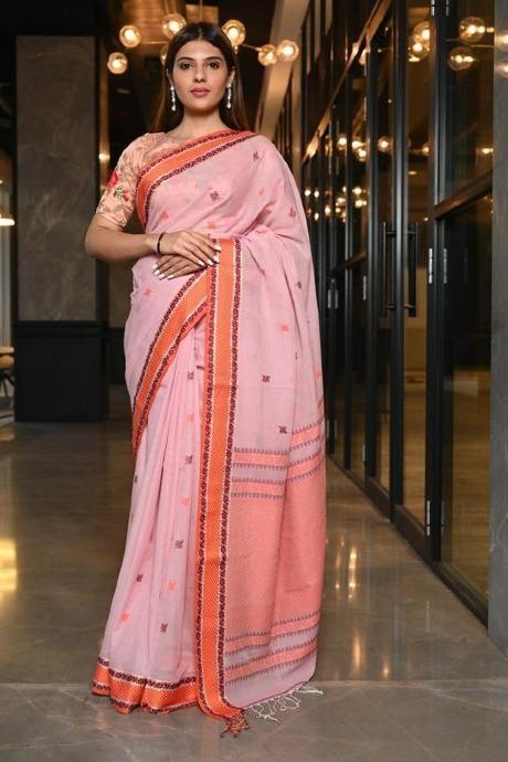 Delightful Light Pink Color Linen Hand Print Saree SY 250