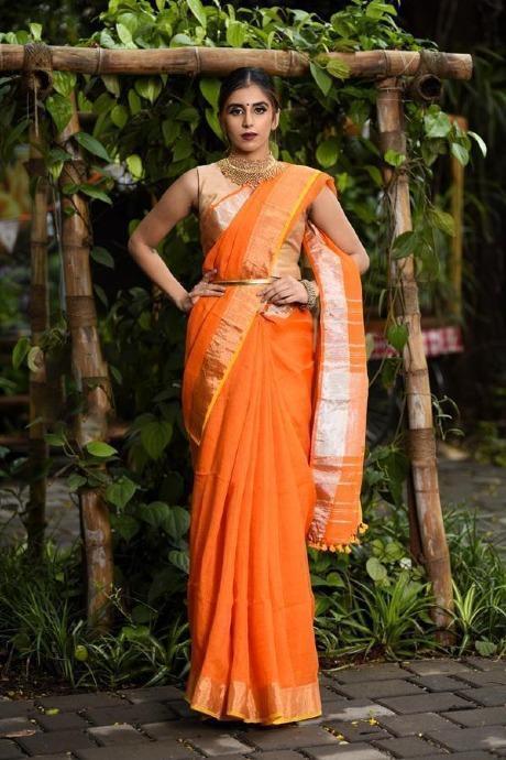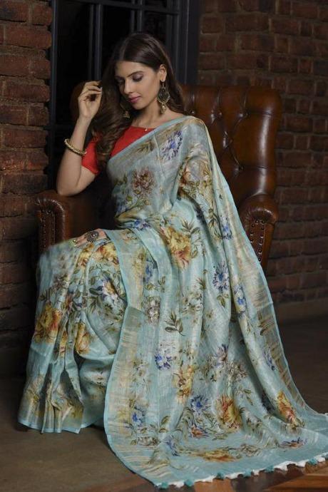 Desiring Orange Color Linen Multi Digital Print Saree SY 261