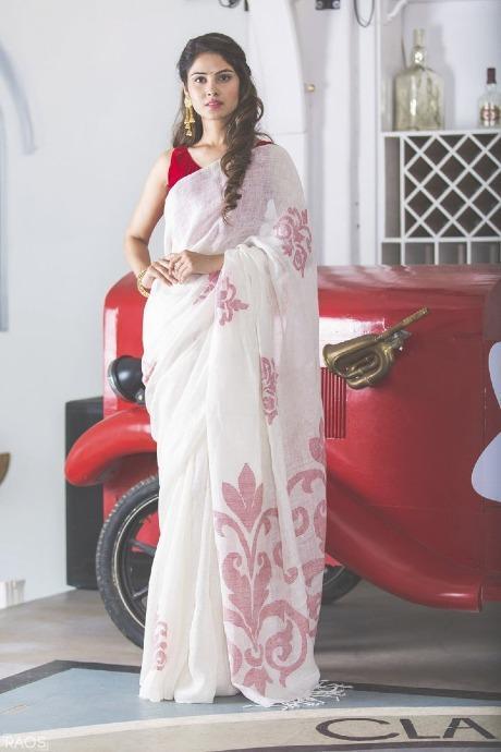 Pure Linen Cotton White Colour Party Wear Saree SY 205