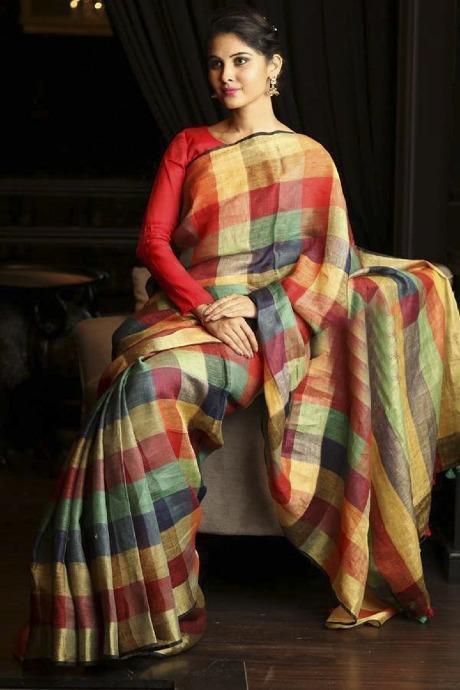 Pure Linen Cotton Multi Colour Party Wear Saree SY 178