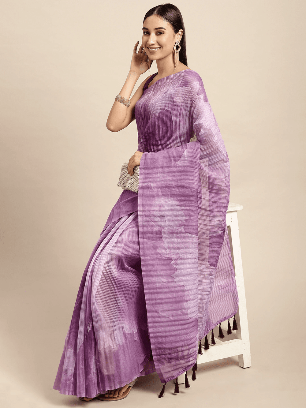 Lavender Pleated Organza Saree with Subtle Tie Dye Effect & Tassel Pallu