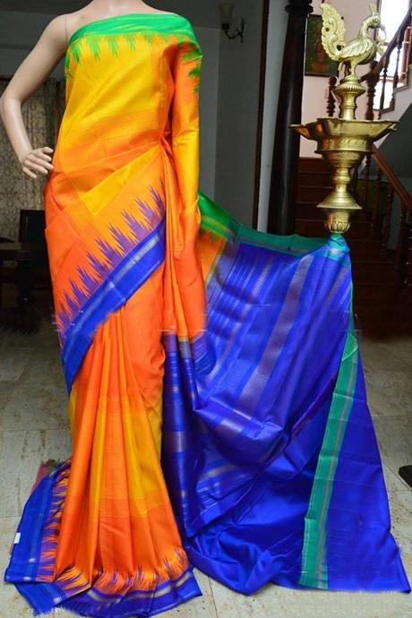 Adorning Multi Colored And Golden Patta Soft Silk Sari SY 1089